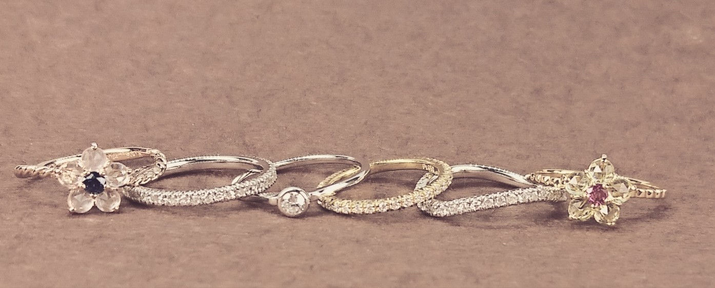 ※受注生産商品になります 品番:KC‐171R 素材:K18ゴールド 石:ピンクサファイア 4石 計0.04ct サイズ:6号~13号 (※その他サイズはお問い合わせ下さい) 大きさ:(4枚葉)幅 5.5㎜×5.5㎜ 高さ 4.2㎜ 腕(リング)幅 1.3㎜ 厚み 1.9㎜~1.2㎜ 加工:4枚葉ミル打ち加工 納期:2週間程お時間を頂きます 備考:撮影環境、天気、照明により実物と 見え方が異なる場合がございます