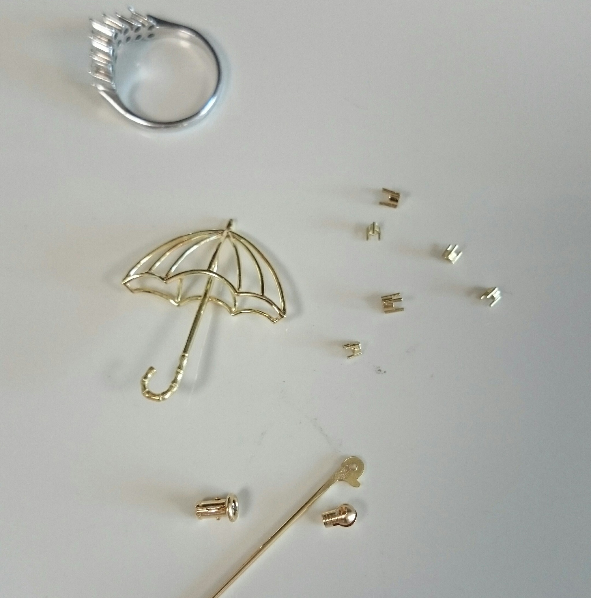 リングのダイヤとその他のダイヤを使って、傘のブローチ/ペンダントにリフォームです。
