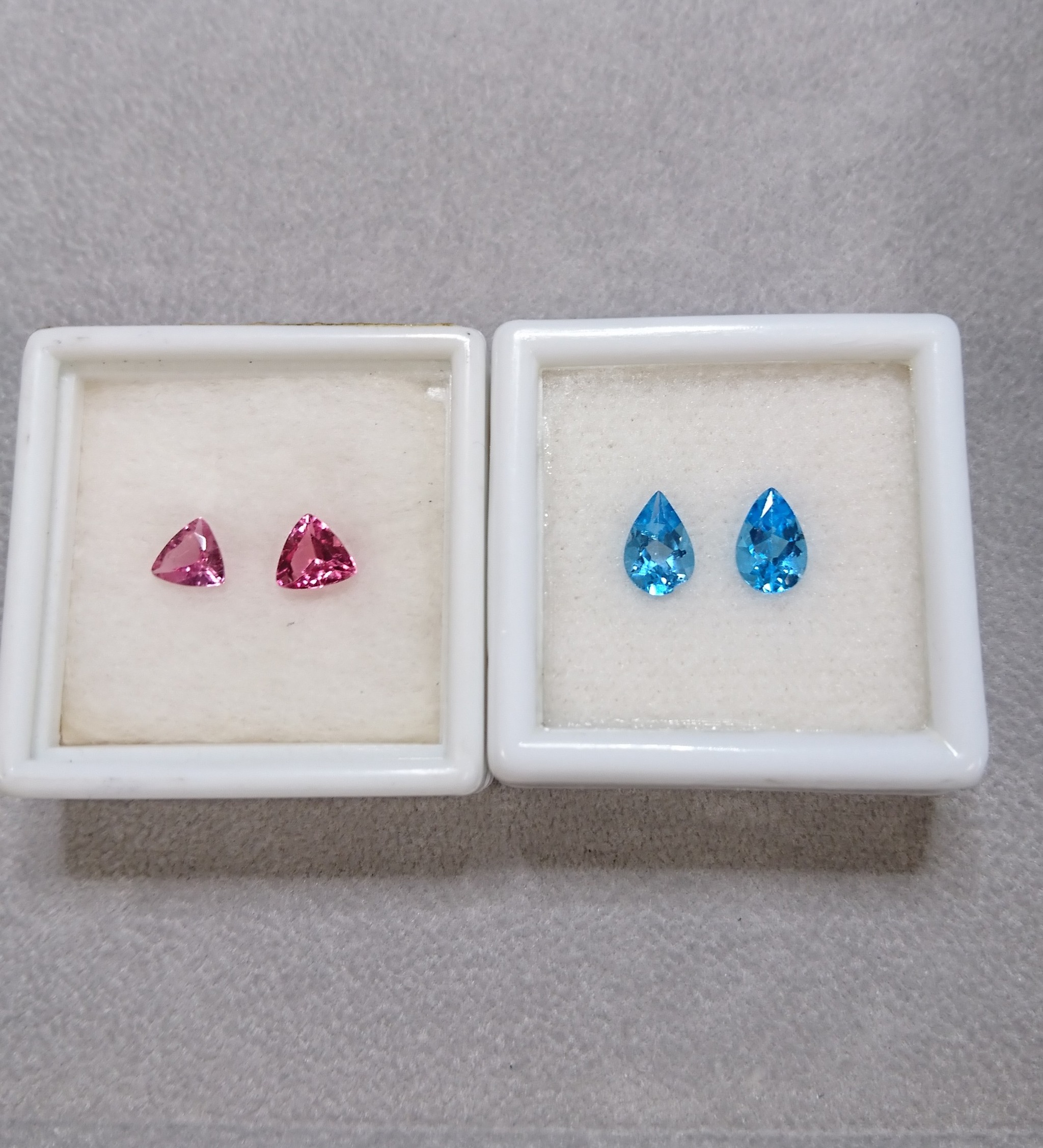 お客様のお持ちの石(ピンクトルマリン、ブルートパーズ)を使ってピアス加工いただきました。ありがとうございます。