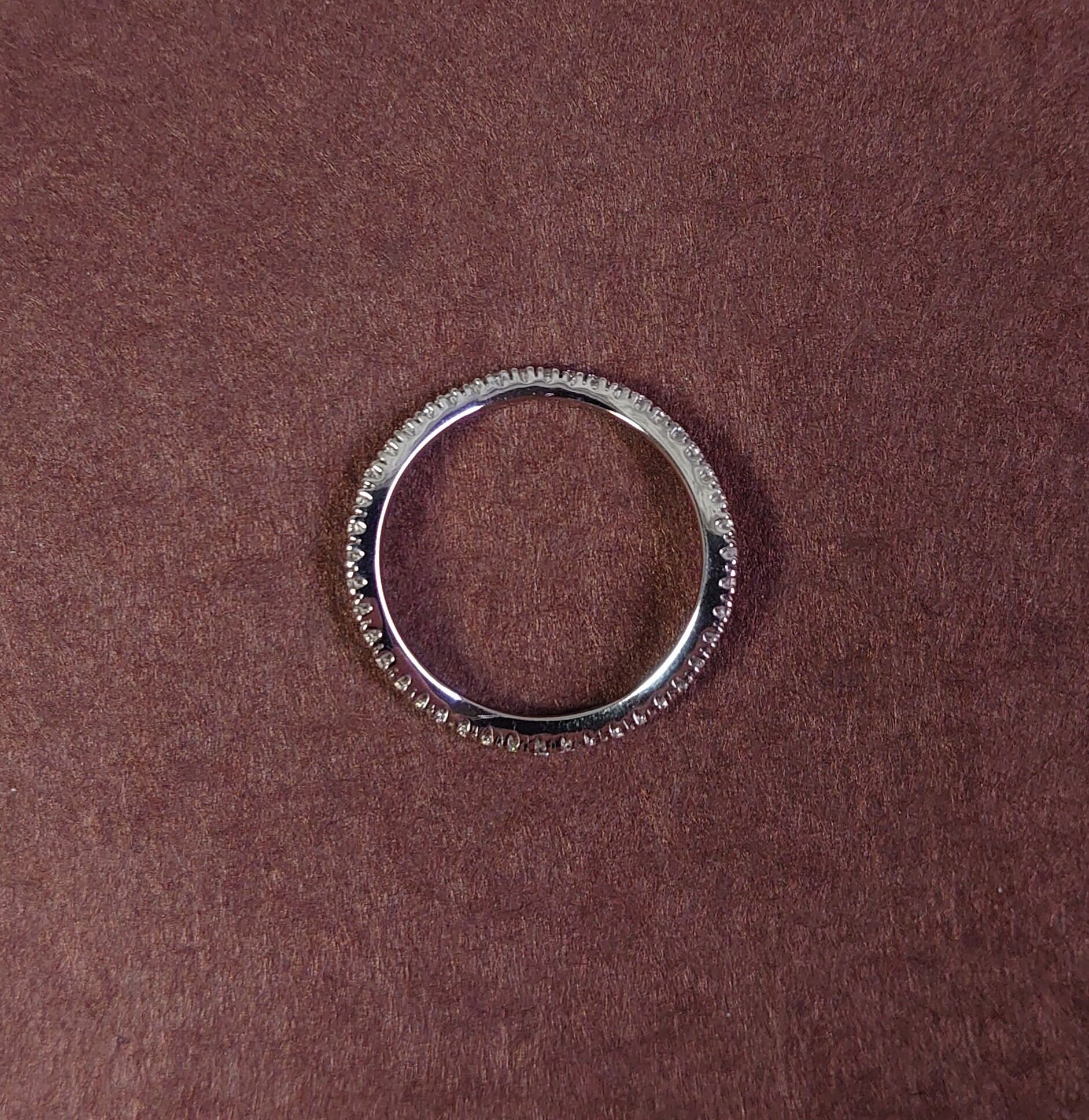 このリングは、特別な日や普段使いにもぴったり。完全なフルエタニティリングなので、どの角度から見ても美しい輝きが楽しめます。シンプルで上品なデザインは、幅広いスタイルにマッチし、指先をより魅力的に演出してくれます。