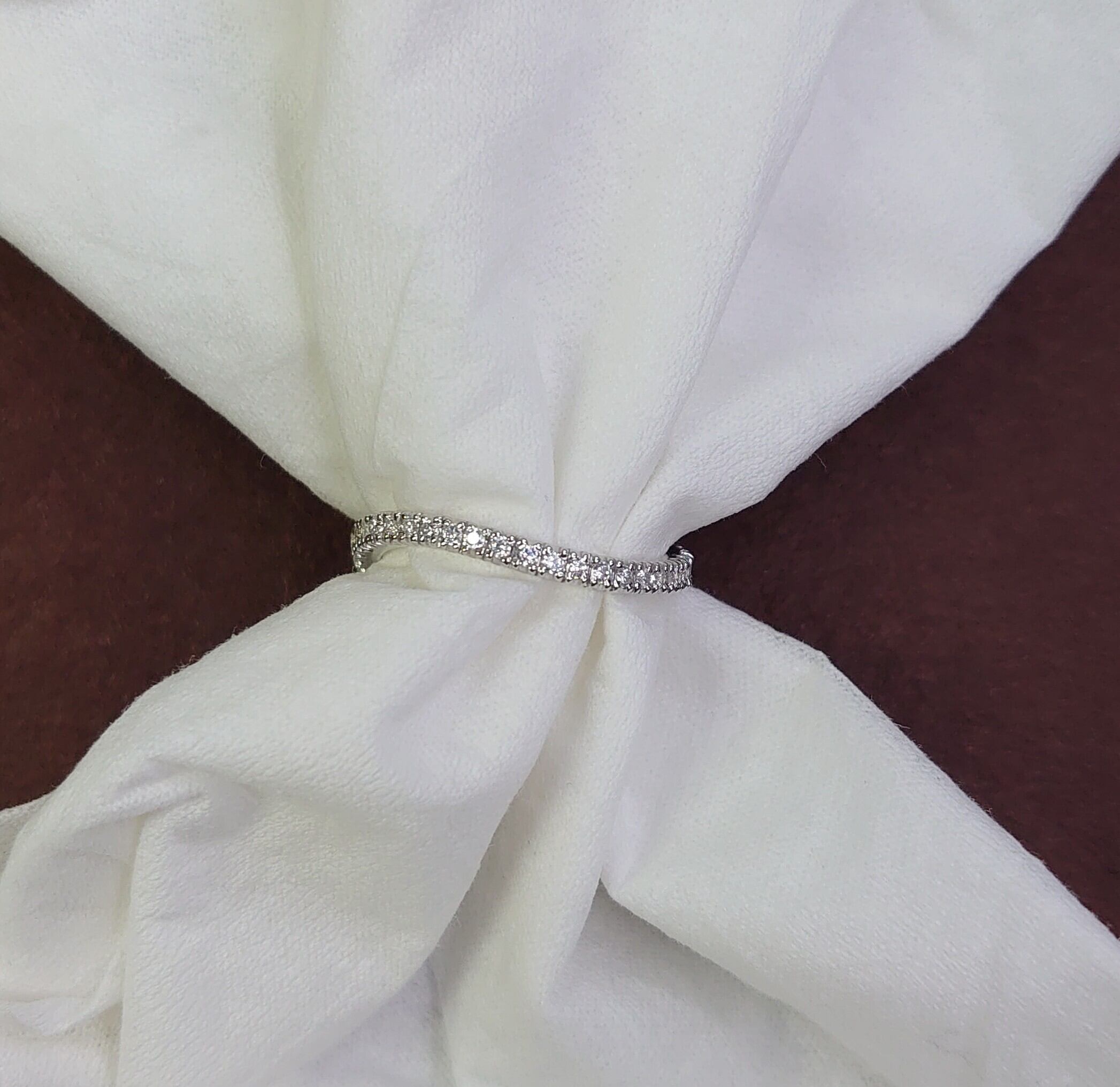 このリングは、特別な日や普段使いにもぴったり。完全なフルエタニティリングなので、どの角度から見ても美しい輝きが楽しめます。シンプルで上品なデザインは、幅広いスタイルにマッチし、指先をより魅力的に演出してくれます。